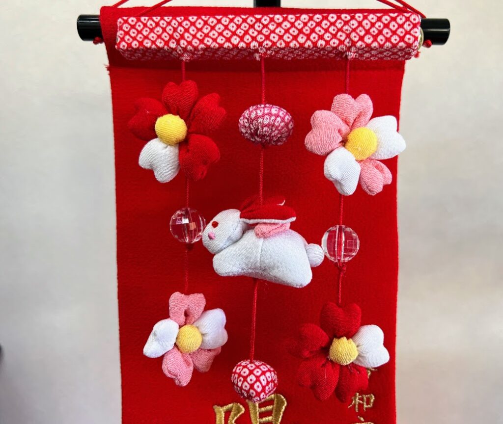 こちらも、可愛らしいうさぎのつるし飾りがついて、優しい可愛らしさを演出します。