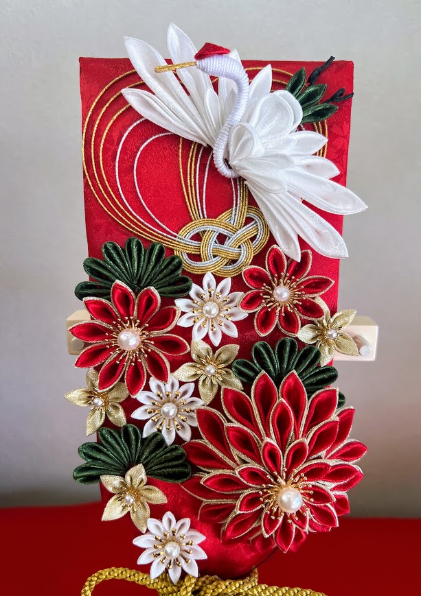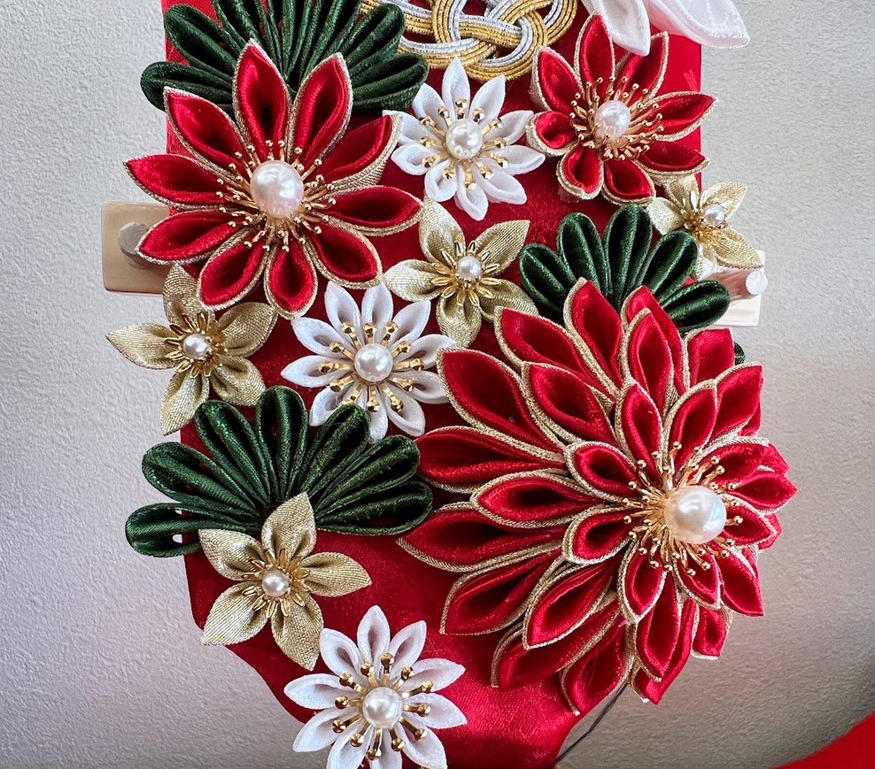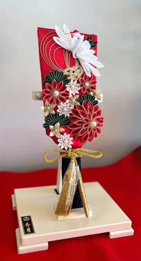 形も綺麗ですし、つまみ細工をご存知であれば、花びらひとつでも手が込んでいる事がお分かりいただけるかと思います。