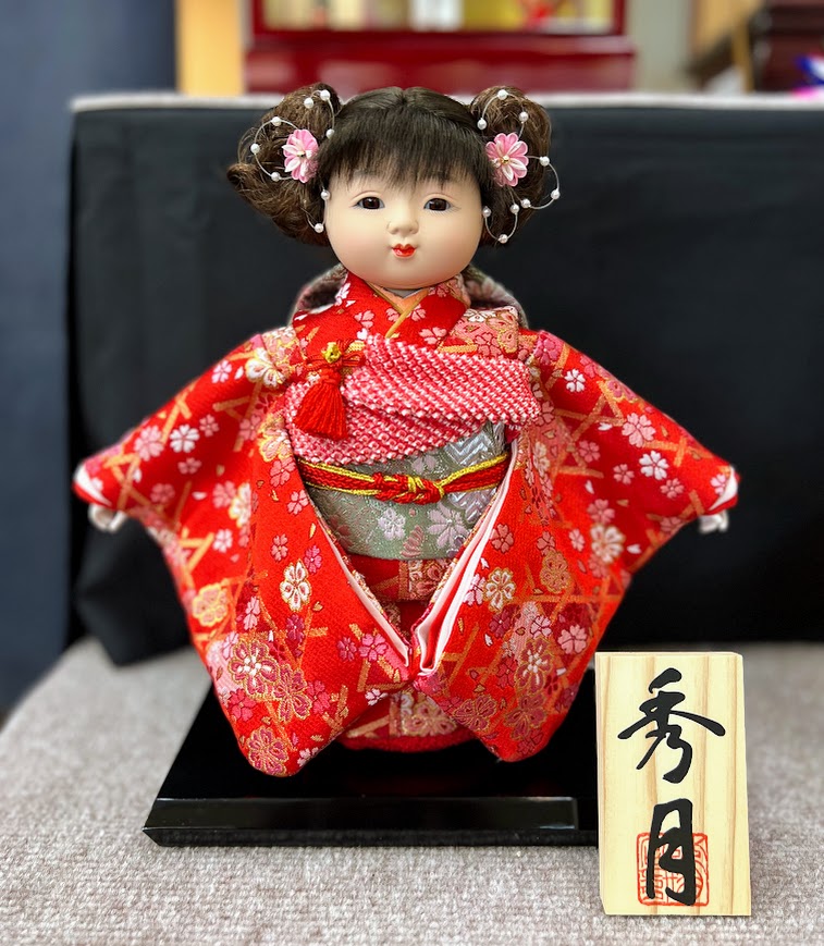 お選びいただいた市松人形は、母が工房にて一から制作する秀月オリジナルの市松人形。