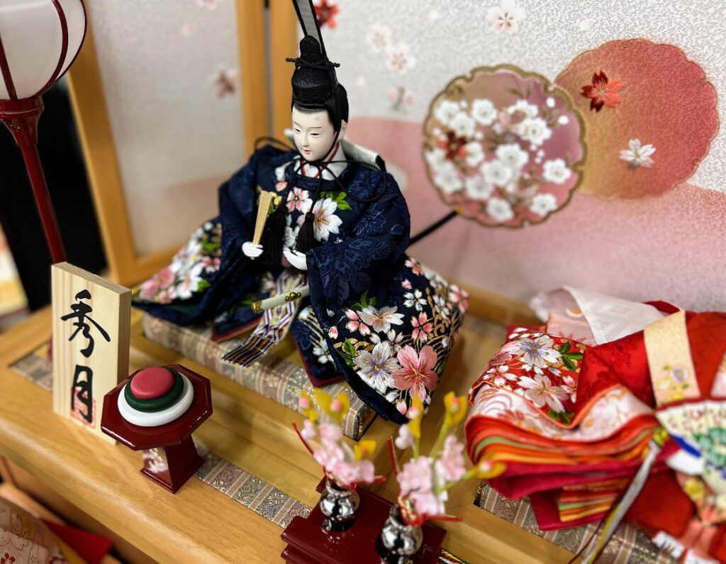 大阪府堺市のI様はご来店いただき、スイスにお住いの可愛いお孫さんへと、秀月オリジナルの可愛い高級収納三段飾りのお雛様をお選びいただきました。