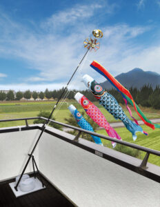 そして鯉のぼりの揚がっている所には自然と笑顔が集まり、なによりも神様へ子どもの誕生をお知らせする目印です。