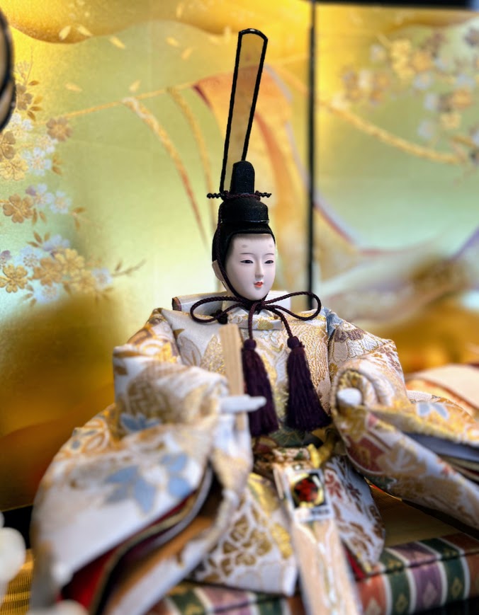 Y様がお選びいただいたお雛様は、あえて十二単を強調し絢爛豪華に映える様にと厚みを持たせ、より金襴の豪華さをアピールする様にと着せ付けられております。