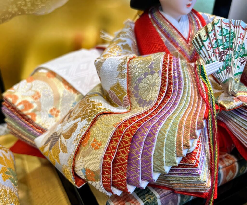 こうして十二単のお袖の重ねも美しく、仕事の丁寧さもお分かりいただけるかと。