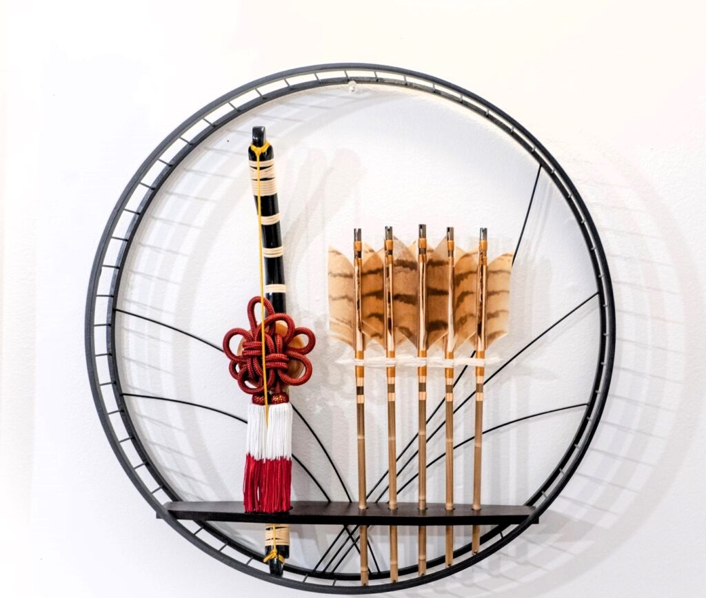 こちら、千筋竹細工枠を使用した破魔弓飾りで全体が軽量に出来ている為に、壁掛け飾りとしてもお飾りいただけます。