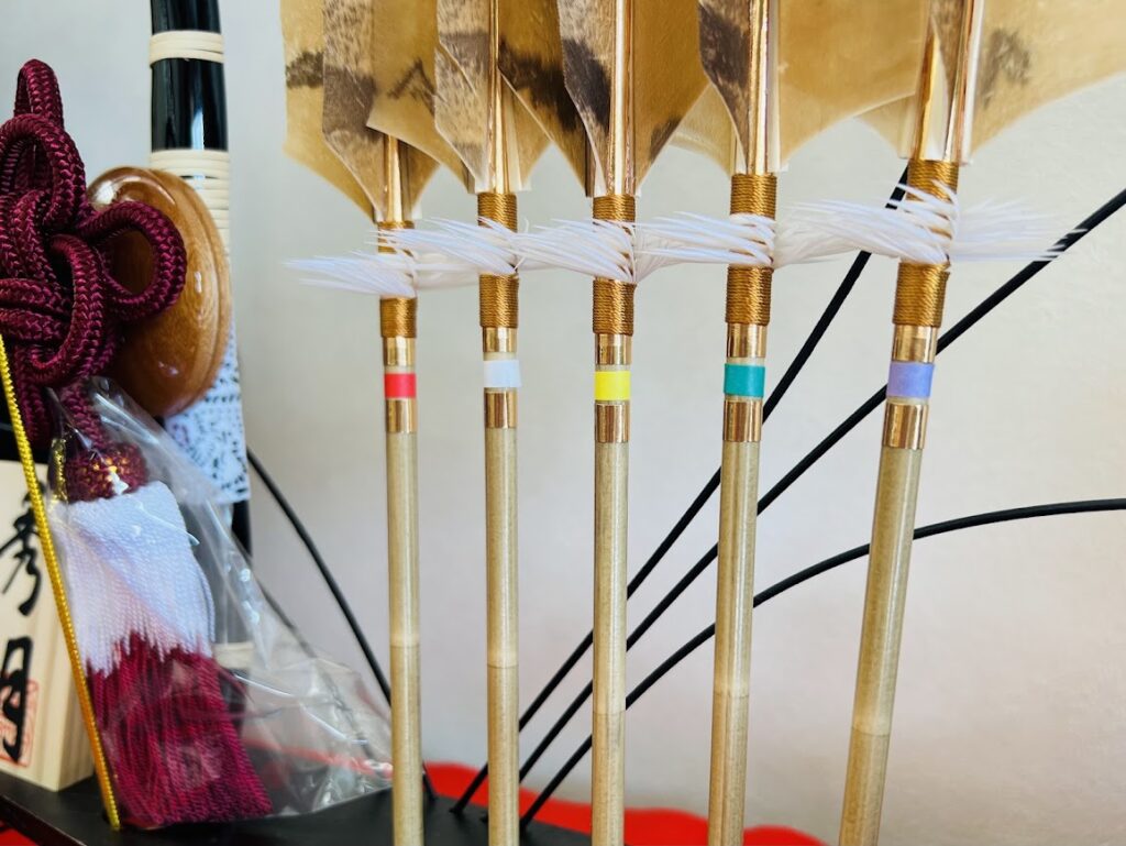 お子様の四方をお護りし健やかに成長し、仁・義・礼・智・信の五徳を備えた立派な子に育つ様にとの願いを込めて、秀月オリジナルの破魔弓飾りが完成いたしました。