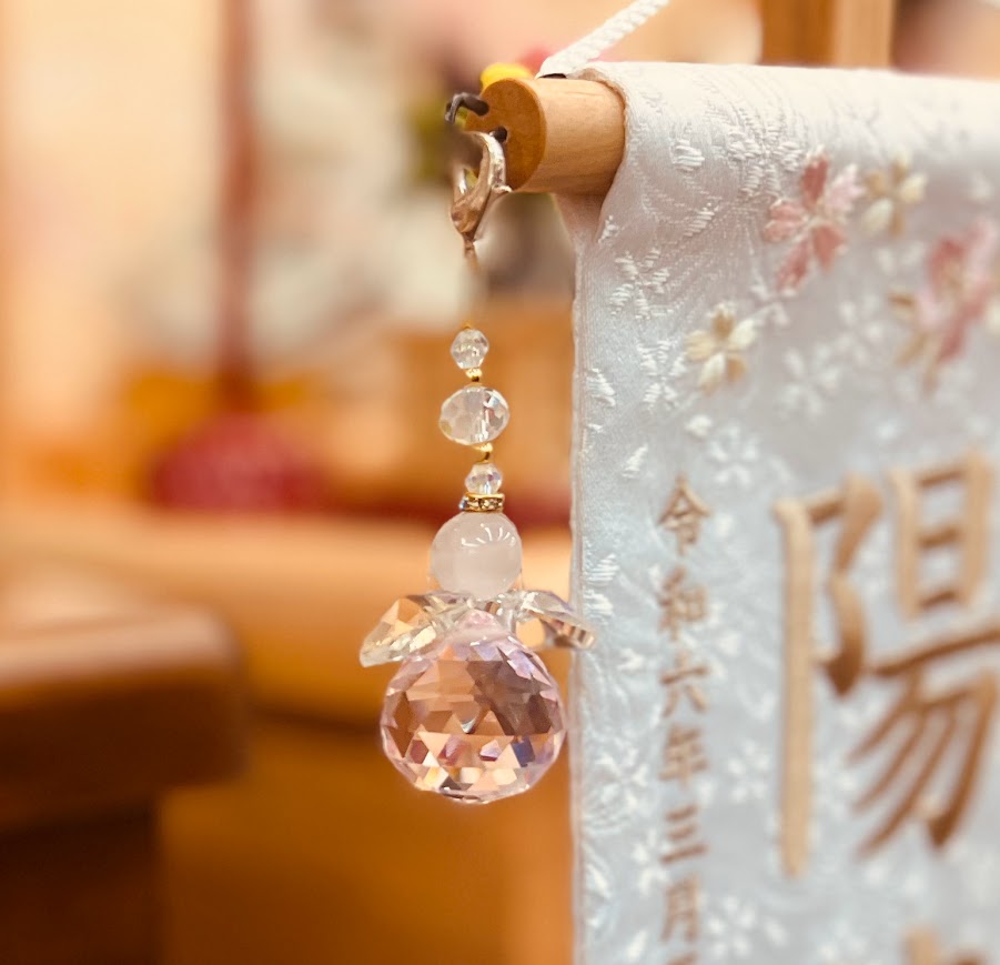 こちらのAngel Sun Ornamentは、名前旗をお飾りされなくなっても単体でお守りや魔除けのチャームとして使えますね。