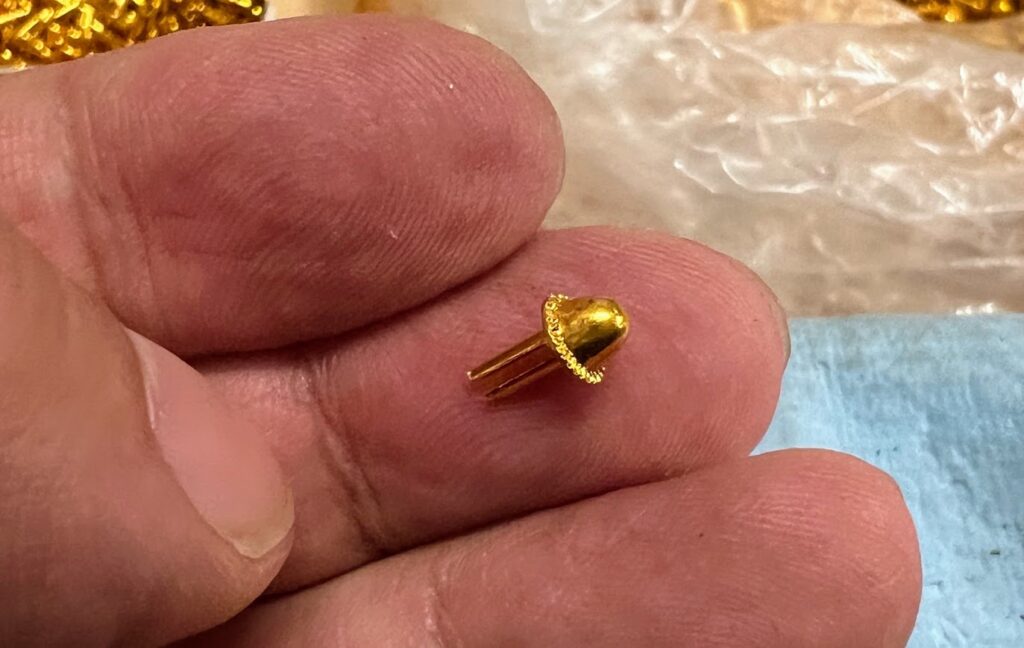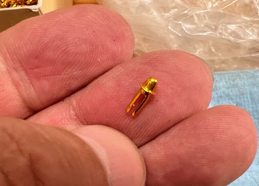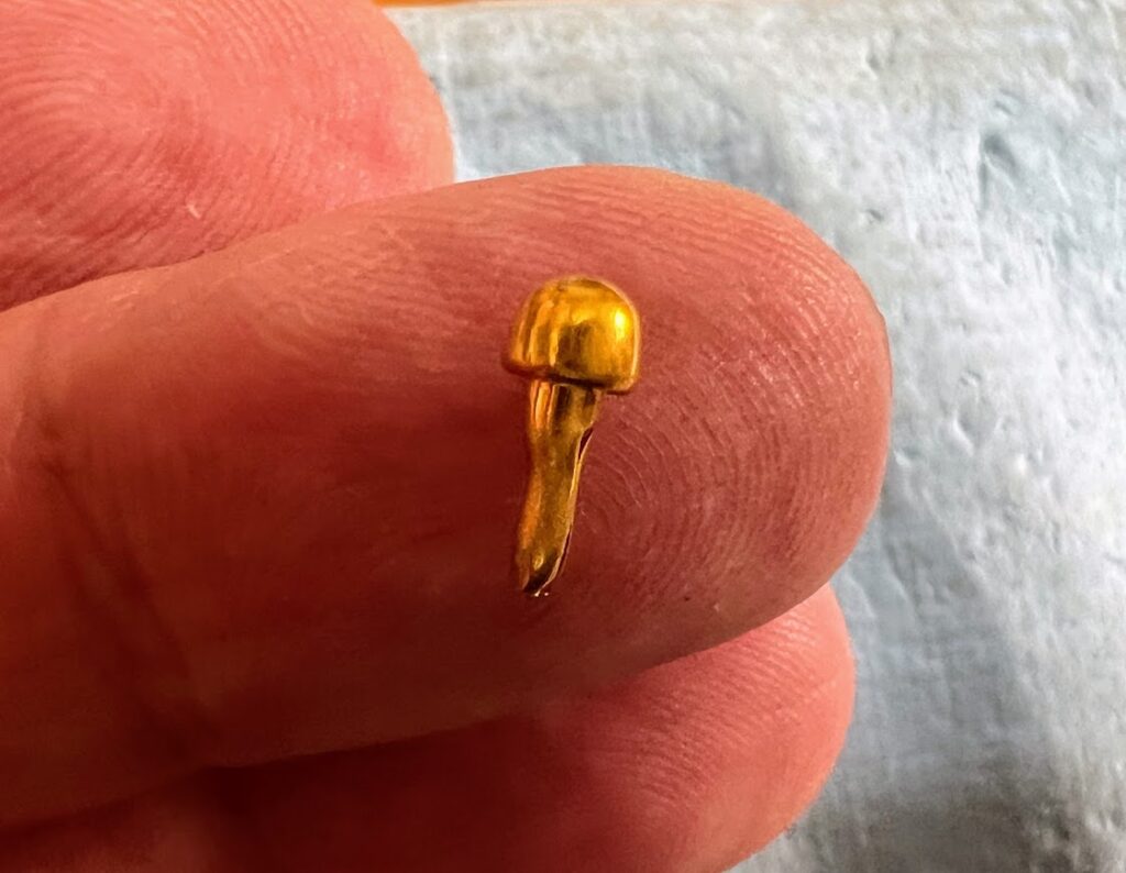 分かりやすい様に、小型ペンチの先で摘まんでみましたが、こんなに小さくともギザギザが付いた鋼鉄製で、鍍金が施してあります。