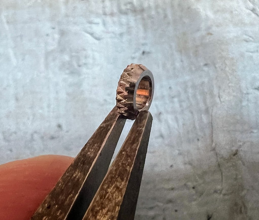 金具があまりに小さい為、最近では老眼鏡の上にハズキルーペを付けたダブル使用で、とてもお客様には見せられない姿で黙々と制作しておりまして。