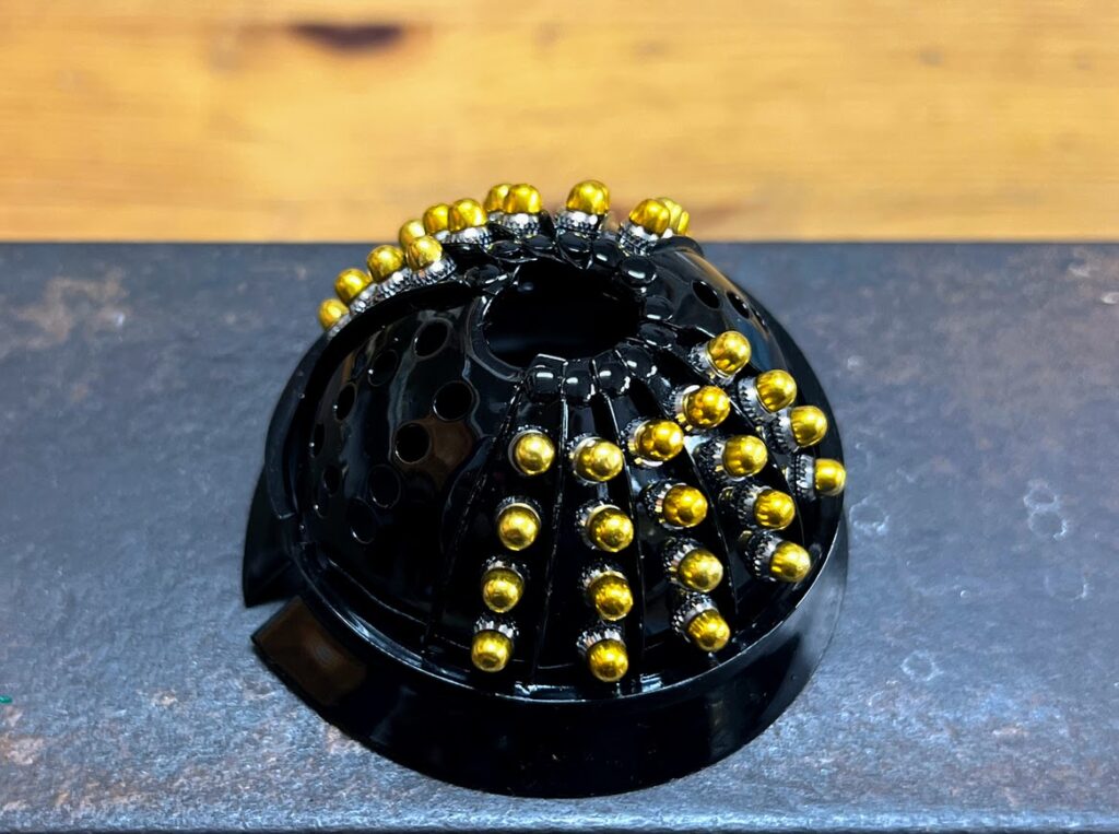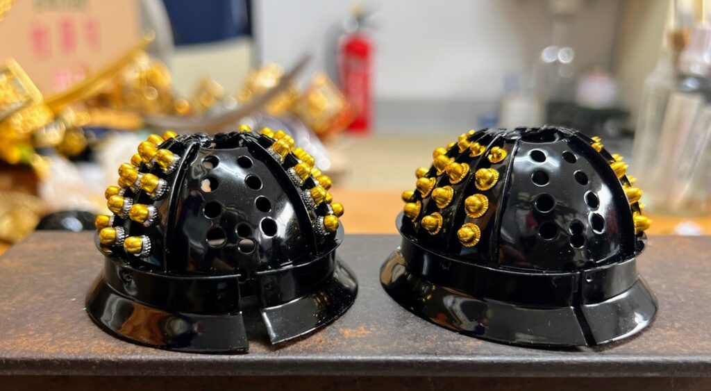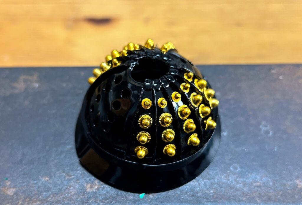 写真は兜鉢といって、ちょうどヘルメットの部分ですが、秀月では5号(メーカーにより号数は異なります)といって最も小さな兜のひとつです。