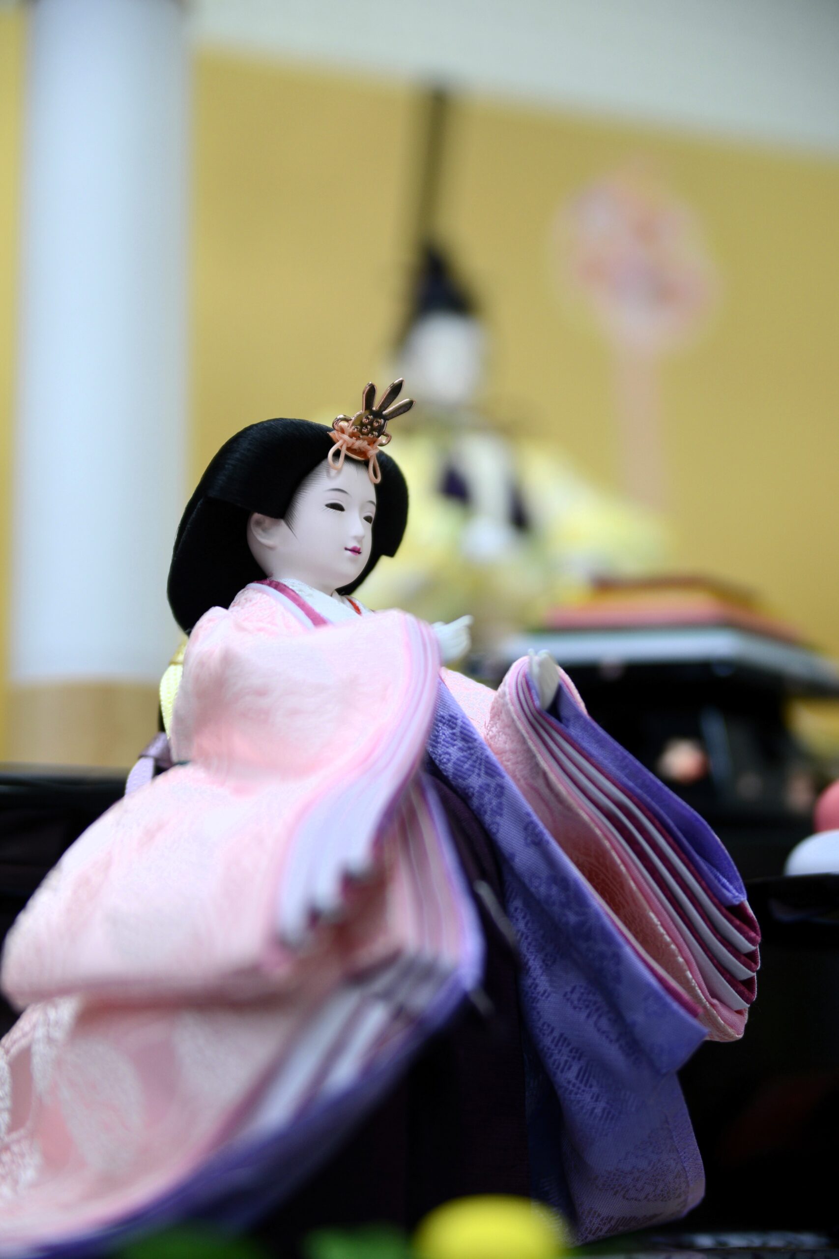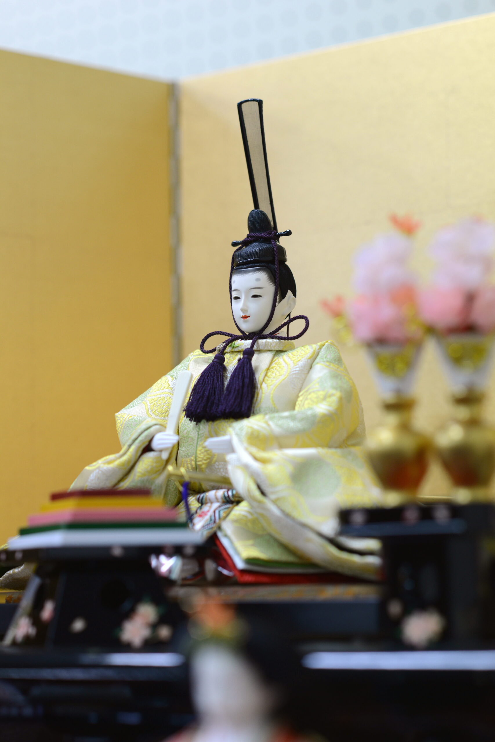 三人官女も同じくパステル調のお着物で、三人それぞれが色違いのお着物を着て、殿と姫に仕える身でありながらも、お洒落を楽しむというのも現代風かもしれませんね。