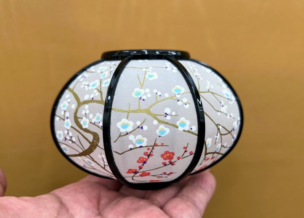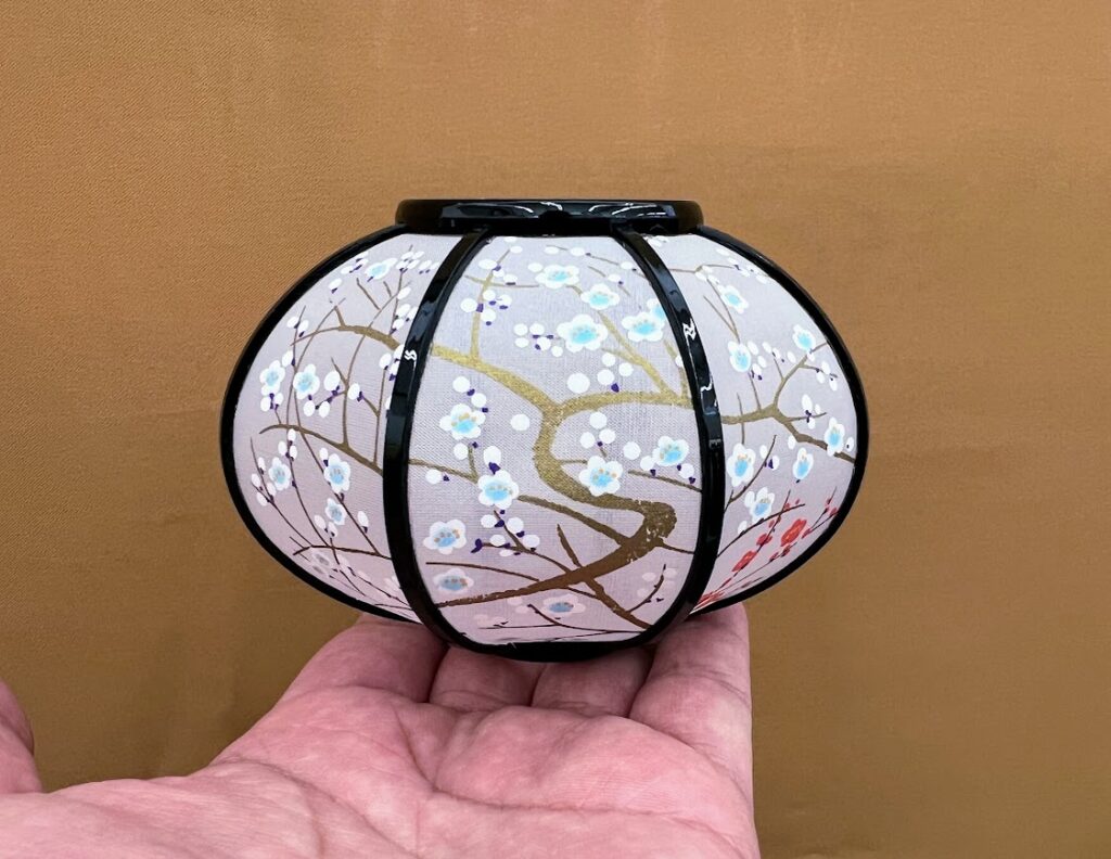 もともとがそれほど大きな雪洞では無い為に、ホヤも小さ目ですので、大きさと形、雰囲気に合った紅梅白梅を描いていきます。
