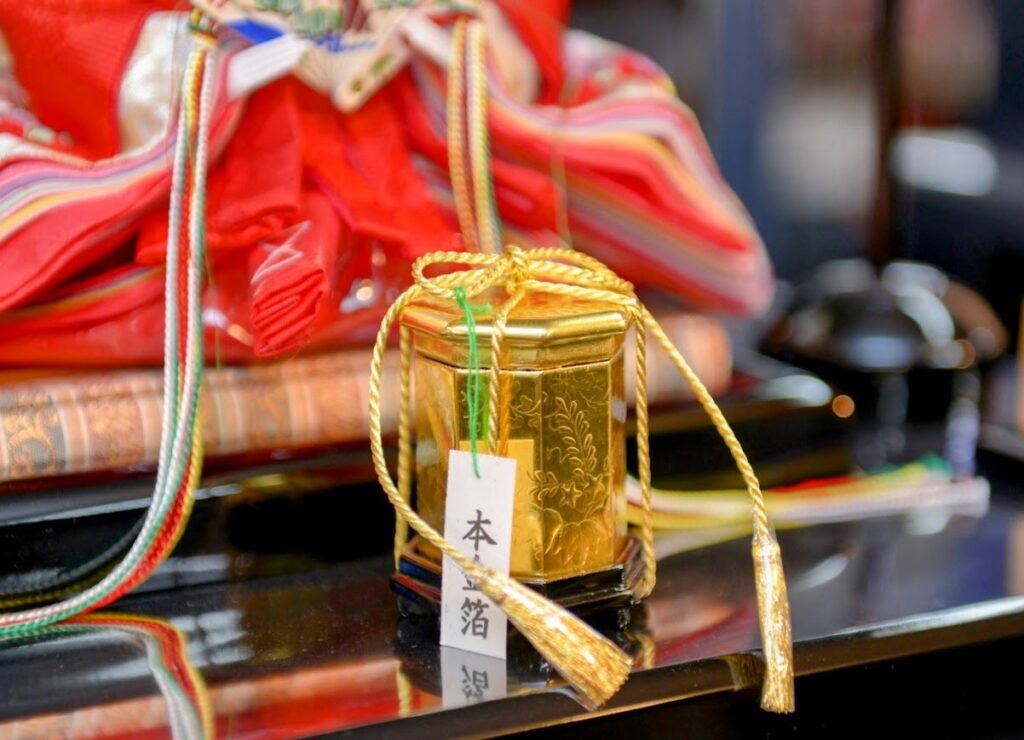 こちらは一点もので、木製の貝桶に蒔絵を施し、その上から金箔を貼ってあります。