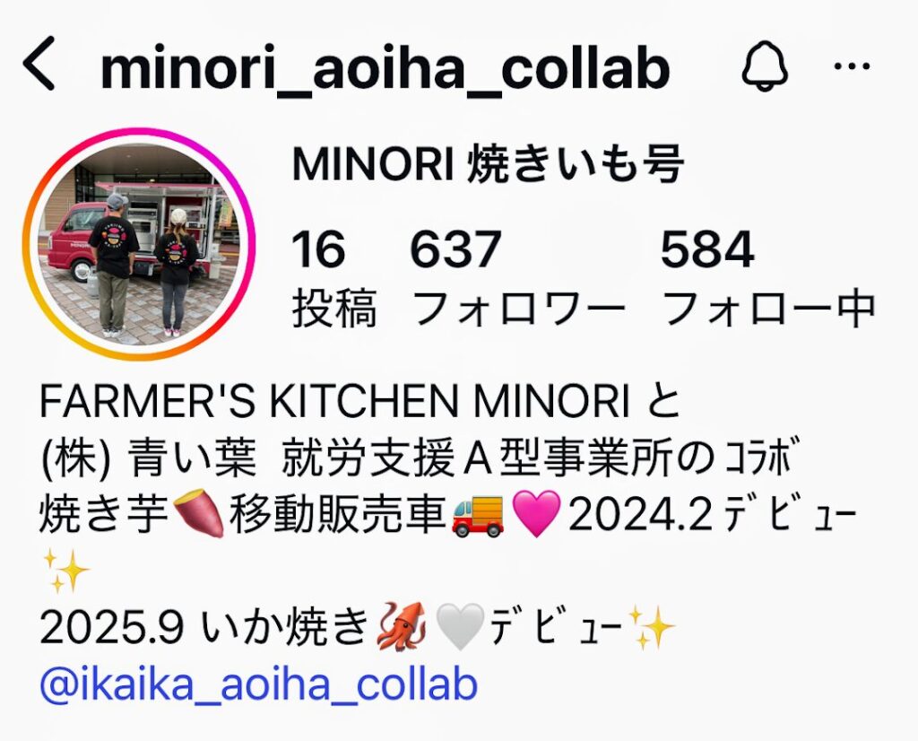 FARMER’S KITCHEN MINORI様インスタグラム・・・MINORI 焼きいも号