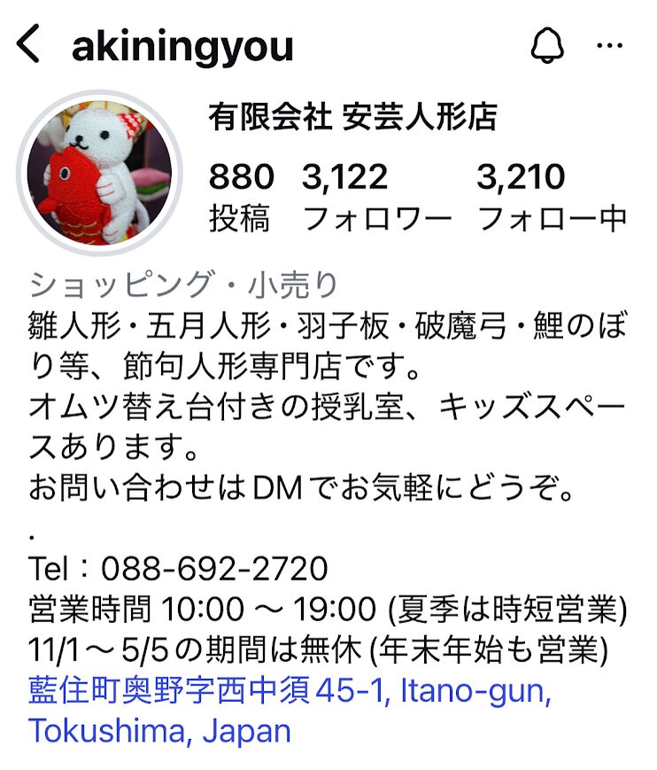 安芸人形店様のインスタグラム・・・有限会社 安芸人形店