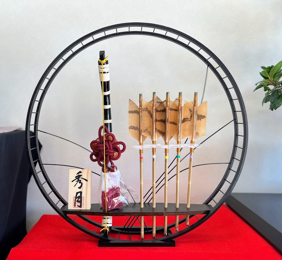 掛川市のF様は秀月オリジナルの破魔弓飾り